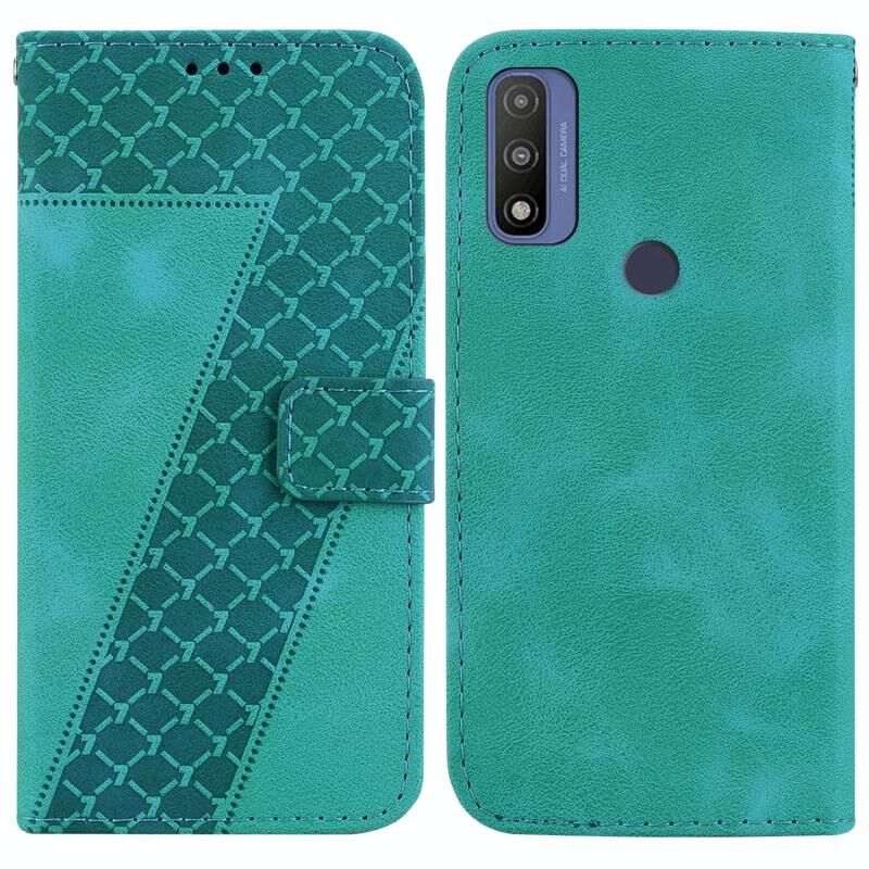 For Motorola G Pure Seven-shaped Embossed Leather Phone Case(Green)
