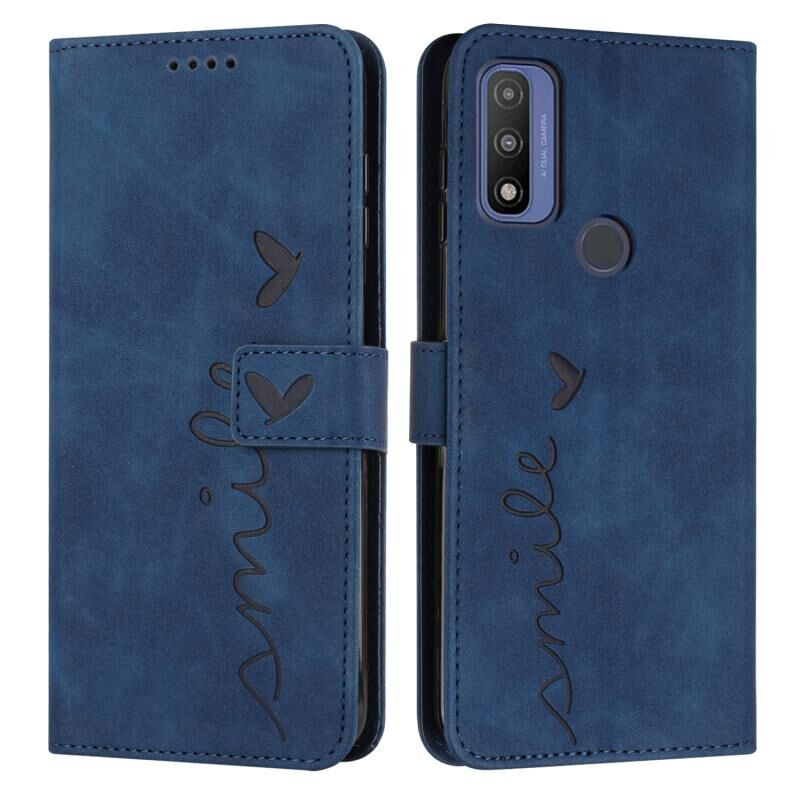 Για Motorola G Pure Skin Feel καρδιά μοτίβο δερμάτινη θήκη τηλεφώνου (μπλε)