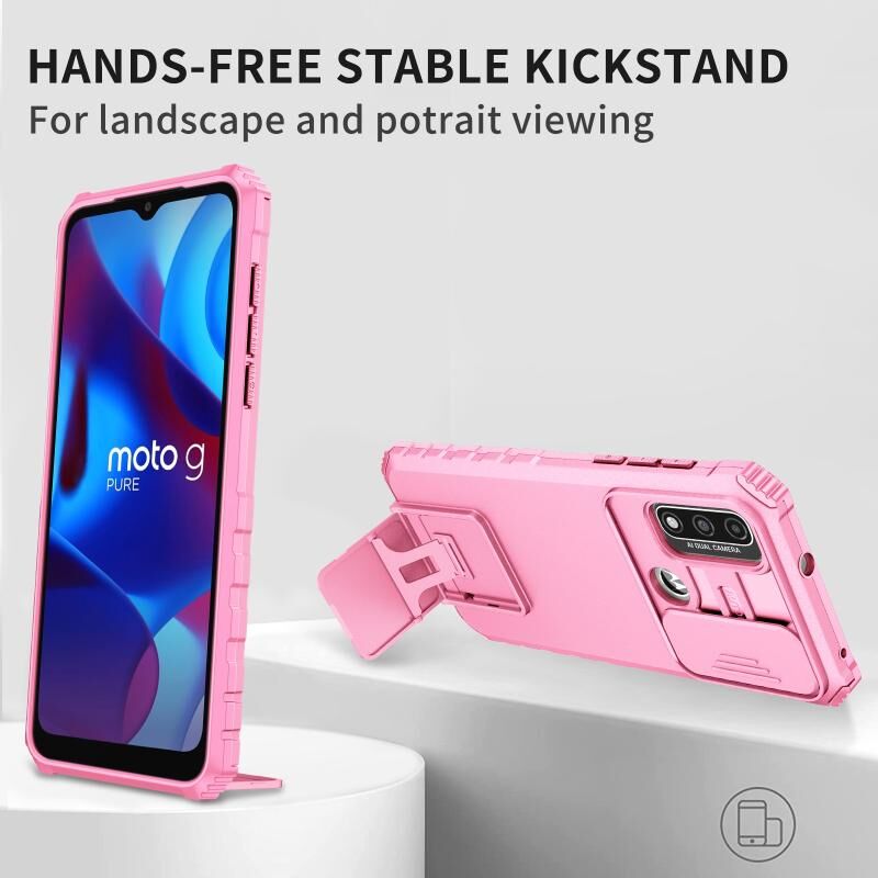 Για Motorola G Pure Στερεοσκοπική κάτοχος συρόμενη Camshield υπόθεση τηλεφώνου (ρόζ)