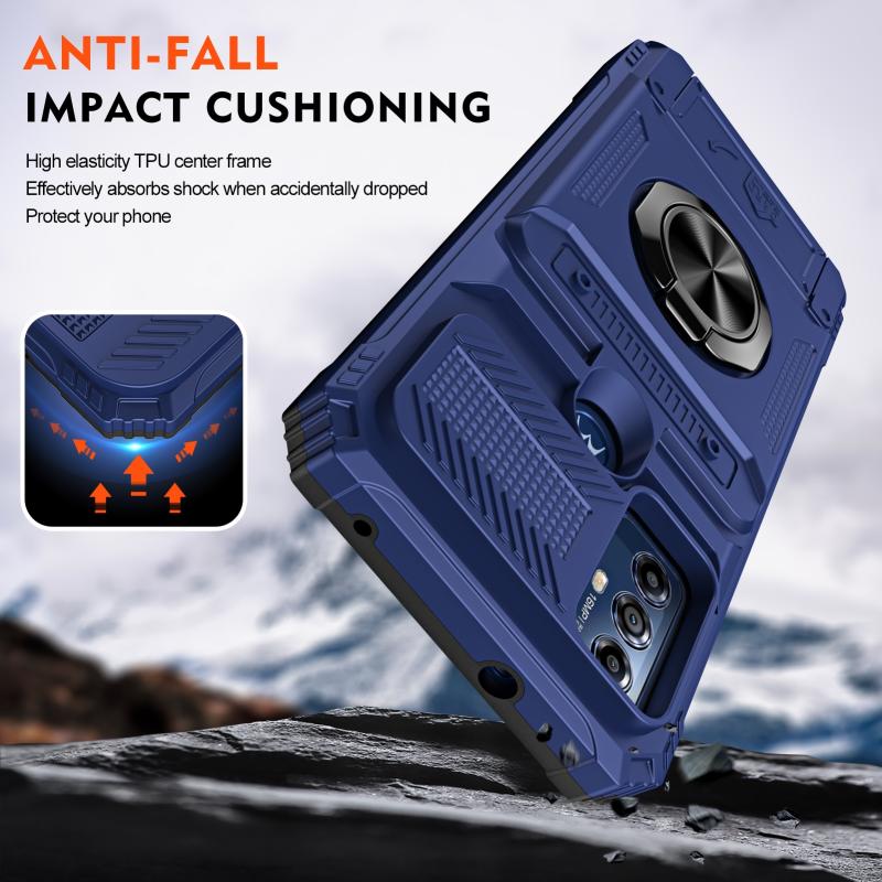 For Motorola G Pure TPU+PC Shockproof Card Slot Phone Case with Metal Ring Holder(Blue)