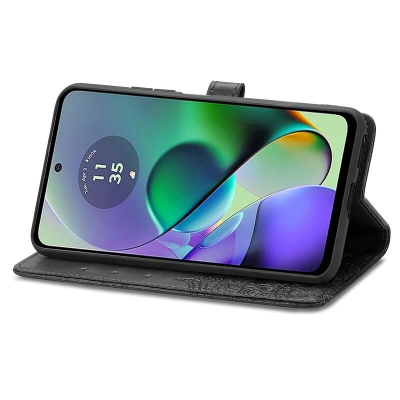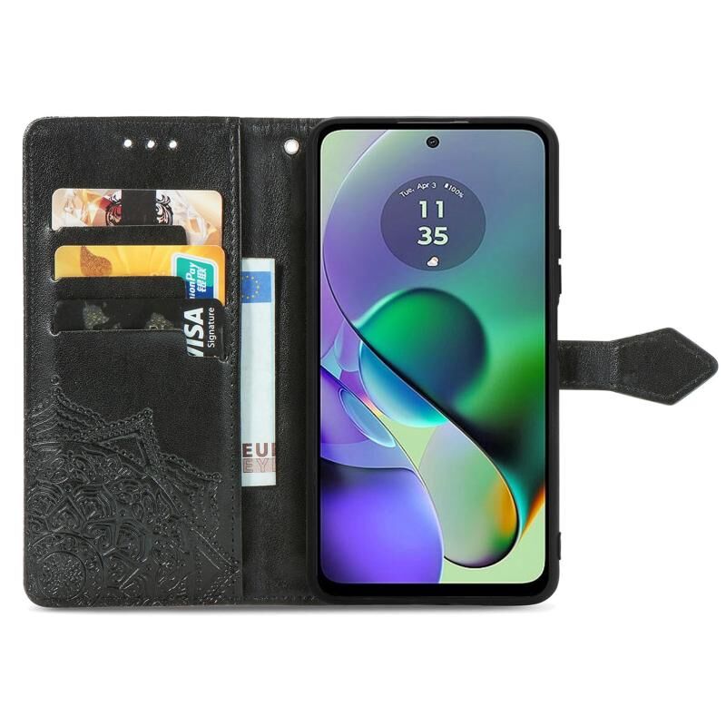 Για Motorola G54 5G Mandala λουλούδι ανάγλυφο δερμάτινη θήκη τηλεφώνου (μαύρο)