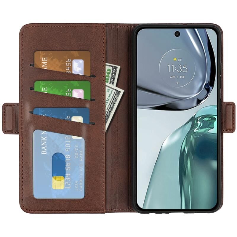 Για Motorola G62 5G Διπλής όψης μαγνητική πόρπη οριζόντια Flip δερμάτινη θήκη τηλεφώνου (καφέ)