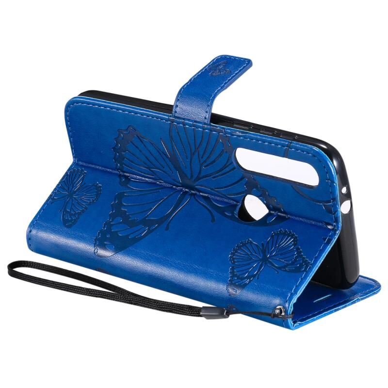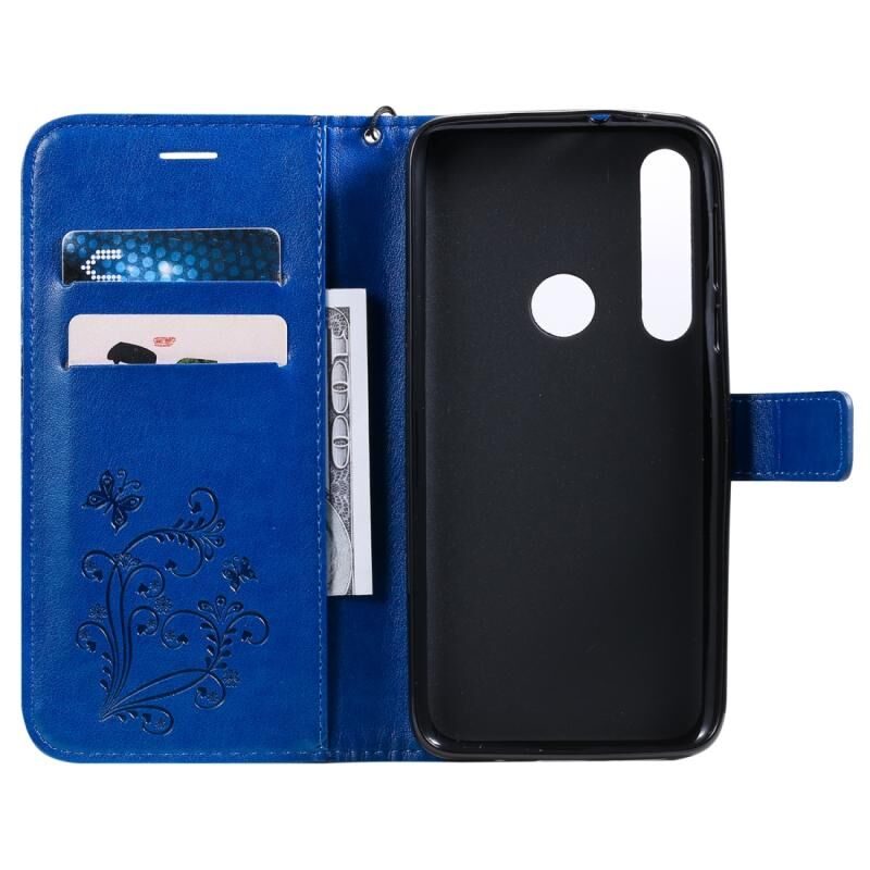 Θήκη για Motorola G8 Play / One Macro με εκτυπωμένο σχέδιο πεταλούδας, οριζόντια αναδιπλούμενη από δερματίνη PU με βάση στήριξης & θήκες καρτών & πορτοφόλι & κορδόνι (Γκρι)