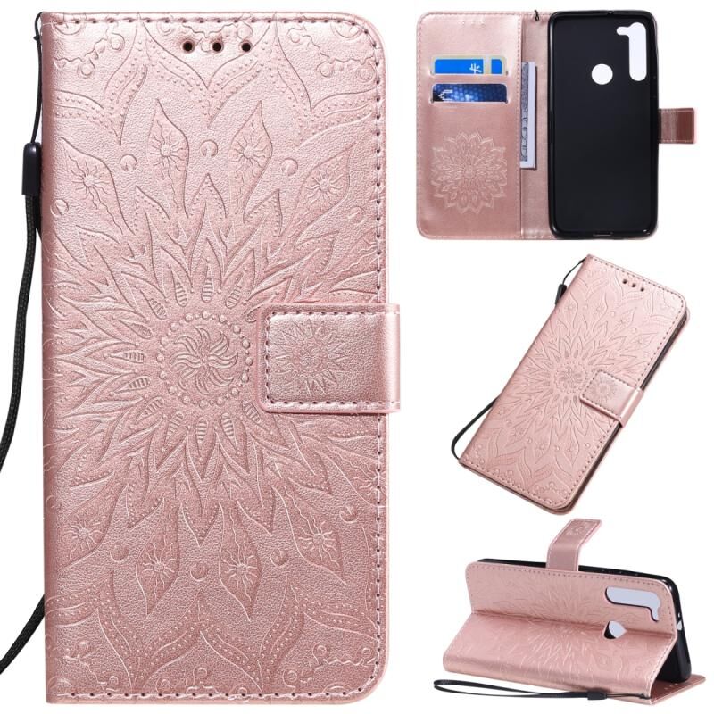 Θήκη για Motorola G8 με εκτυπωμένο σχέδιο ηλιοτρόπιας, οριζόντια αναδίπλωση, από δερματίνη PU με βάση στήριξης, θήκες για κάρτες, πορτοφόλι & λουρί (Κόκκινο)