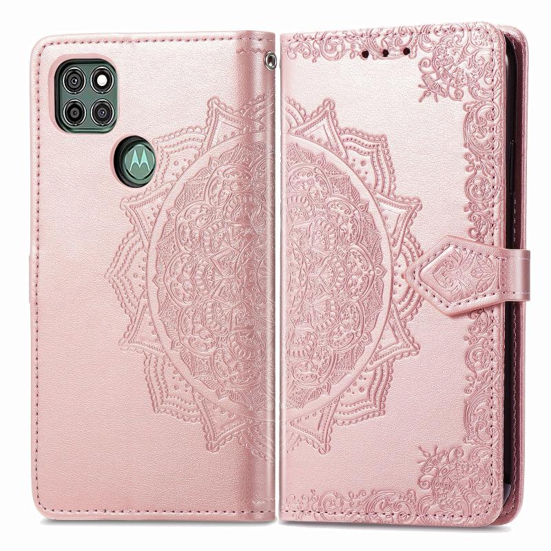 For Motorola G9 Power Mandala Flower Embossed Horizontal Flip Leather Case with Holder & Three Card Slots & Wallet & Lanyard(Rose Gold)