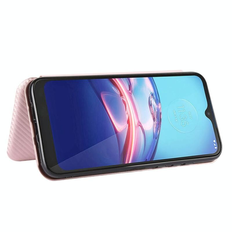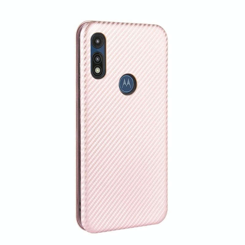 Για Motorola Moto E (2020) Carbon Fiber Texture Horizontal Flip TPU + PC + PU Leather Case με σχοινί & υποδοχή κάρτας (ροζ)