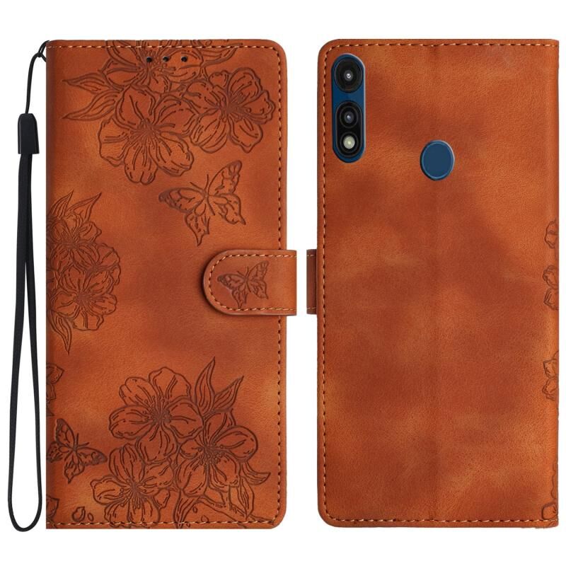 Θήκη κινητού τηλεφώνου Motorola Moto E 2020 Cherry Blossom Butterfly Skin Feel Embossed PU (Κόκκινη)