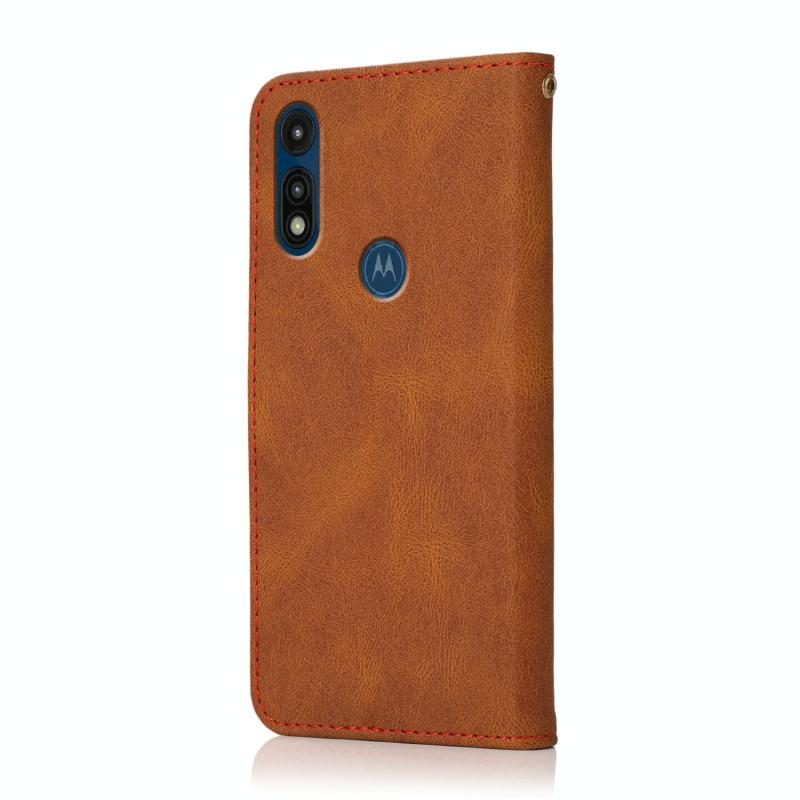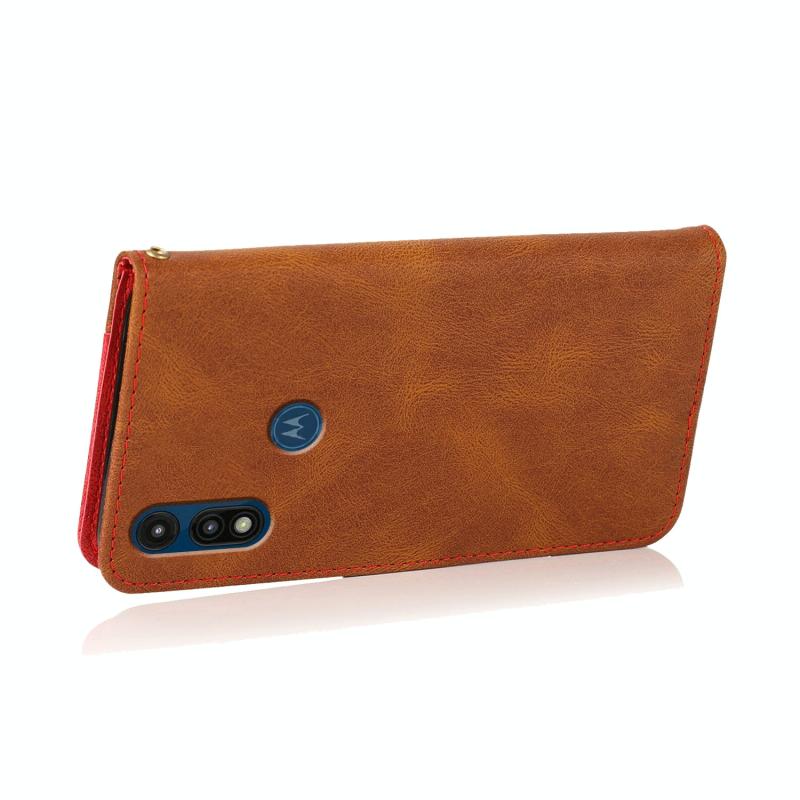 Θήκη τηλεφώνου δερμάτινη με διχρωμία ραφής για Motorola Moto E 2020 (Καφέ Κόκκινο)