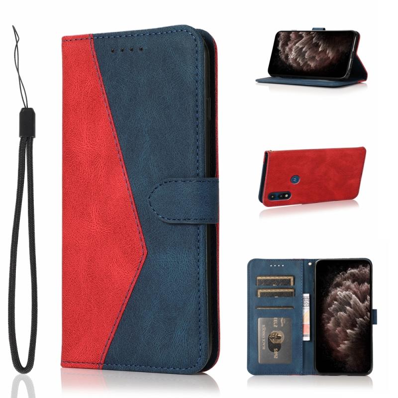 Θήκη τηλεφώνου δερμάτινη με διχρωμία ραφής για Motorola Moto E 2020 (Κόκκινο Μπλε)