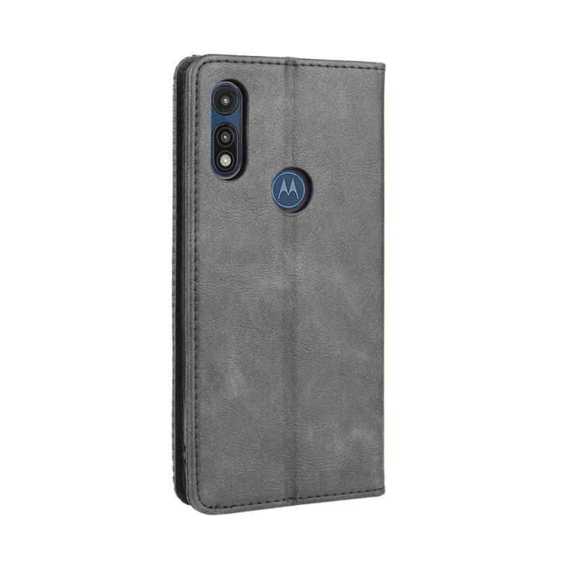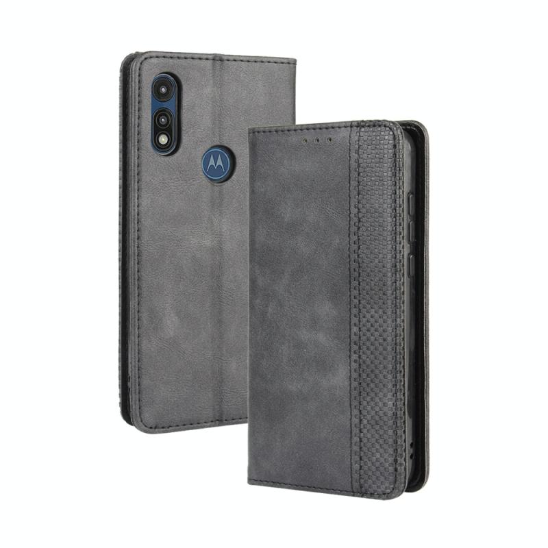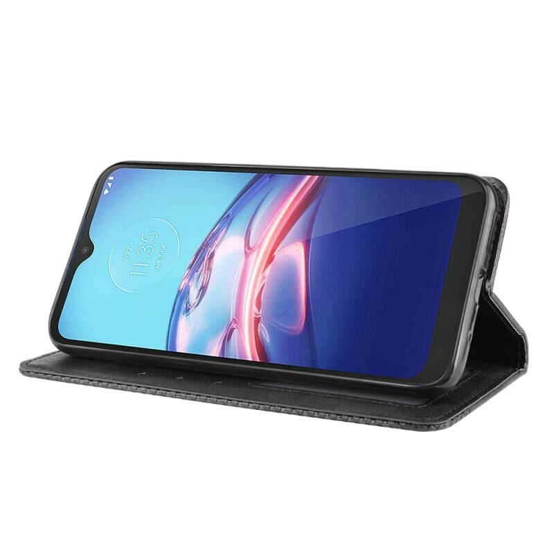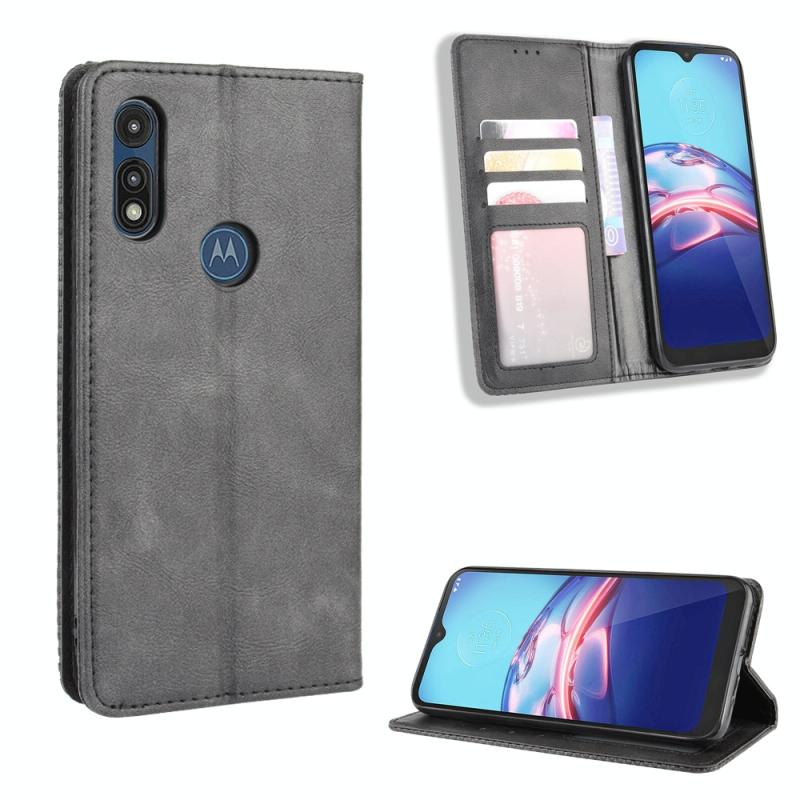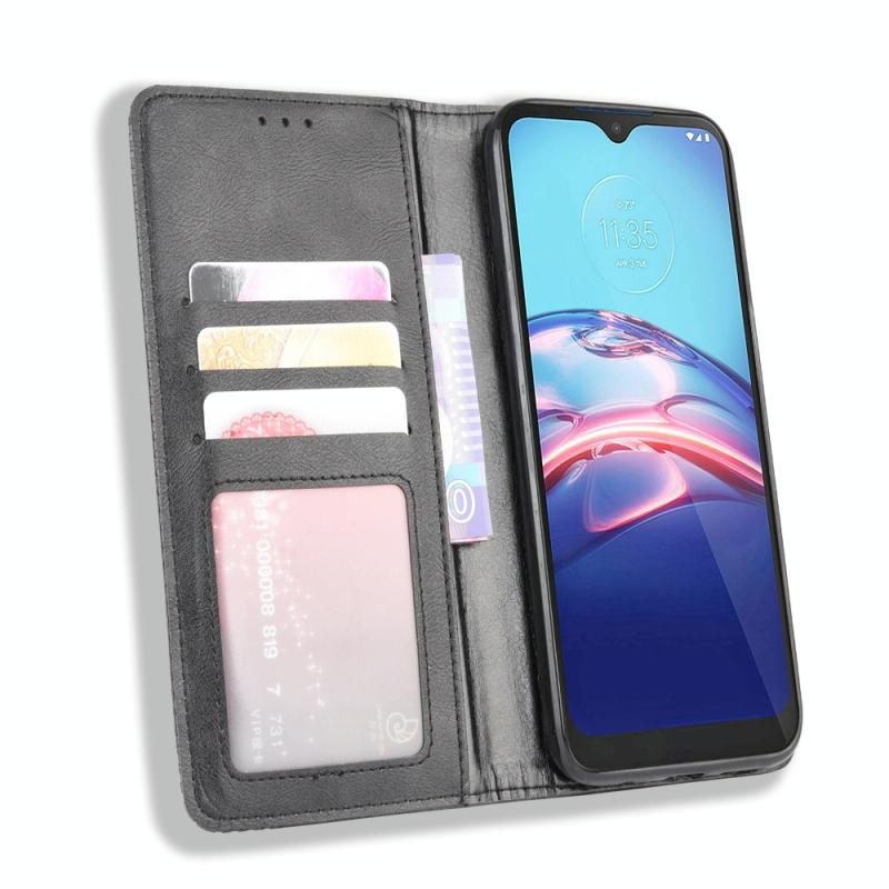 For Motorola Moto E (2020) Magnetic Buckle Retro Crazy Horse Texture Horizontal Flip Leather Case , with Holder & Card Slots & Photo Frame(Black)