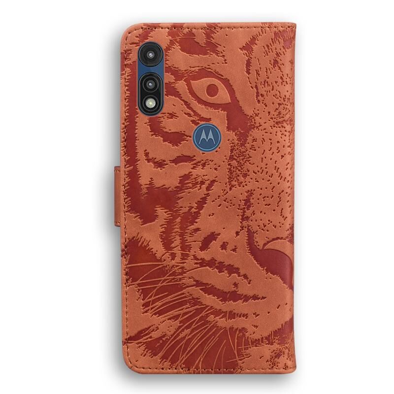 For Motorola Moto E (2020) / Moto E7 Tiger Embossing Pattern Horizontal Flip Leather Case with Holder & Card Slots & Wallet(Brown)