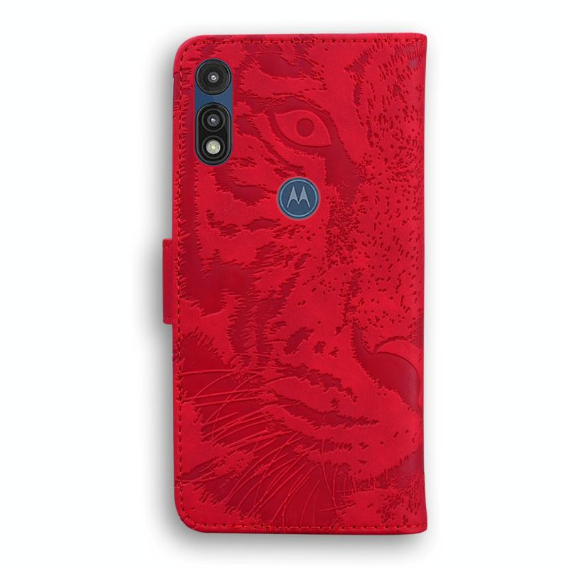 For Motorola Moto E (2020) / Moto E7 Tiger Embossing Pattern Horizontal Flip Leather Case with Holder & Card Slots & Wallet(Red)