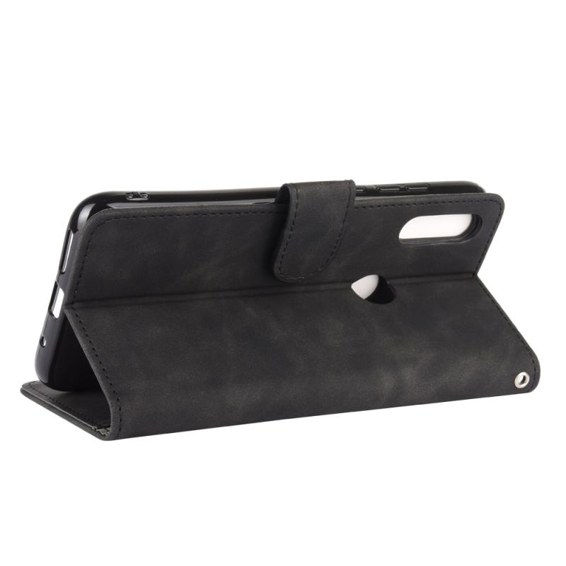 For Motorola Moto E(2020) Solid Color Skin Feel Magnetic Buckle Horizontal Flip Calf Texture PU Leather Case with Holder & Card Slots & Wallet(Black)