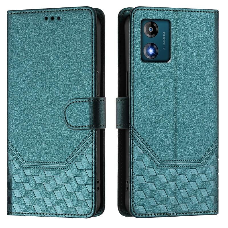 Για Motorola Moto E13 2023 4G Honeycomb ανάγλυφη RFID δερμάτινη θήκη τηλεφώνου (πράσινο παγώνι)