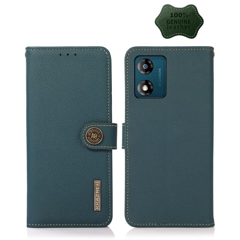 Θήκη τηλεφώνου από γνήσιο δέρμα με υφή Custer KHAZNEH RFID για Motorola Moto E13 2023 4G (πράσινο)