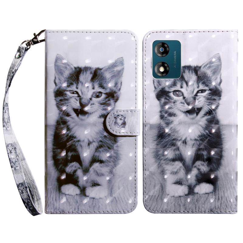 For Motorola Moto E13 3D Painted Leather Phone Case(Smile Cat)