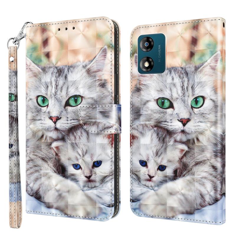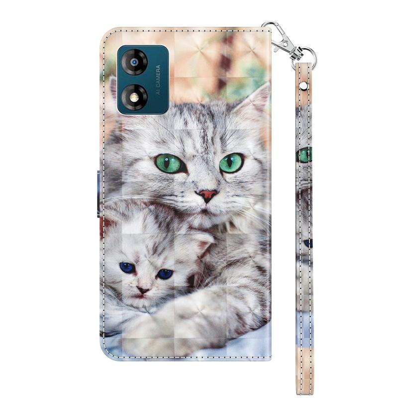 For Motorola Moto E13 3D Painted Leather Phone Case(Two Loving Cats)