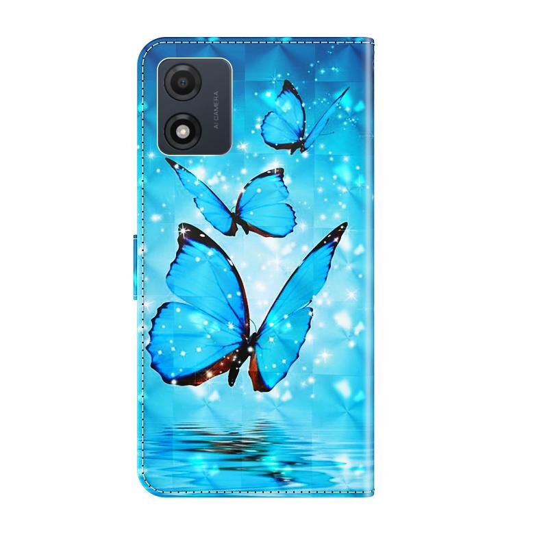 Θήκη τηλεφώνου δερμάτινη με τρισδιάστατο σχέδιο ζωγραφικής για Motorola Moto E13 (Τρεις Πεταλούδες)