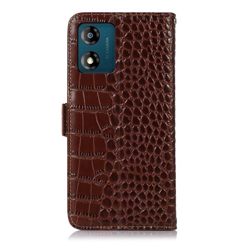 Θήκη τηλεφώνου από δέρμα αγελάδας με επένδυση κροκόδειλου για Motorola Moto E13 4G 2023 (Μαύρο)