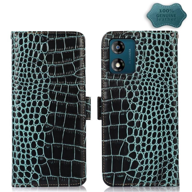 Θήκη τηλεφώνου από δέρμα αγελάδας με επένδυση κροκόδειλου για Motorola Moto E13 4G 2023 (Μαύρο)