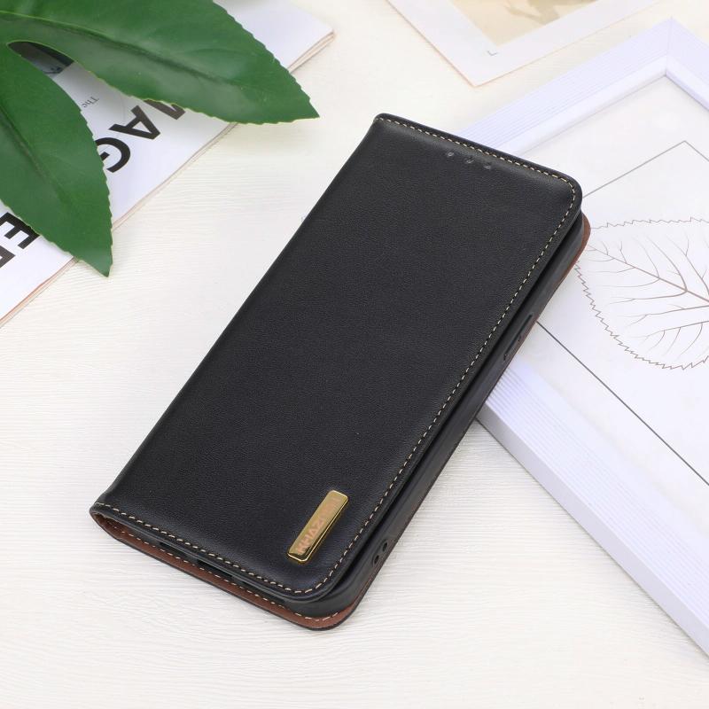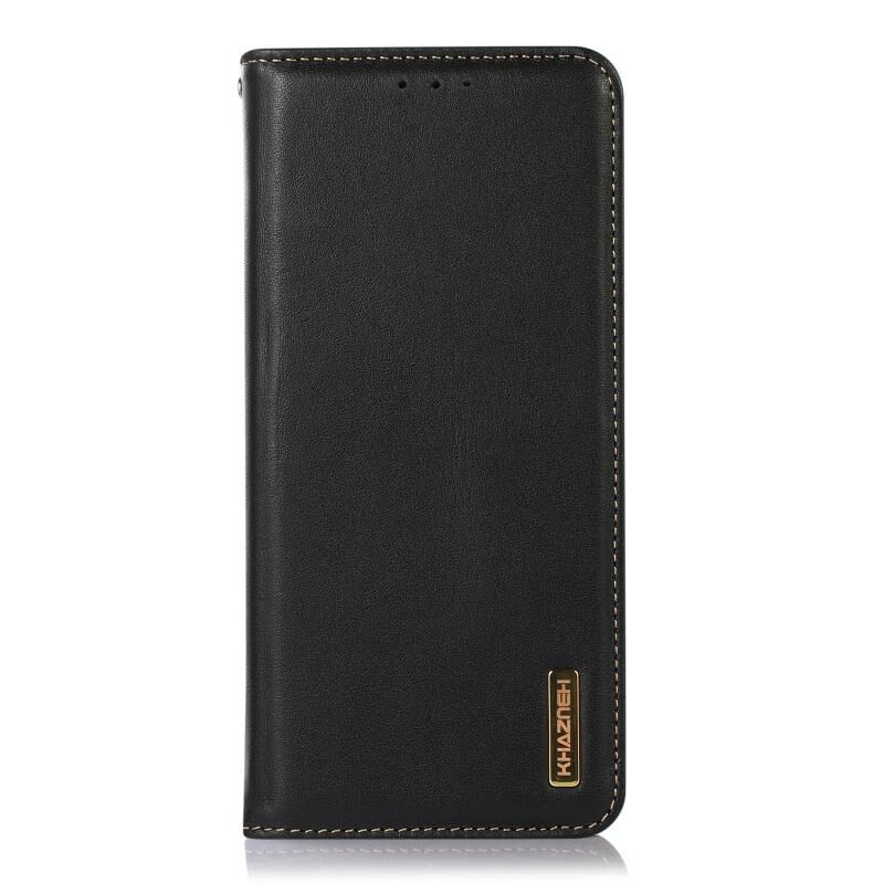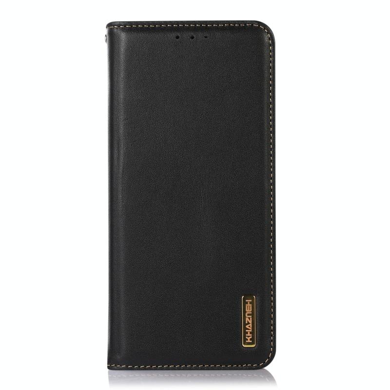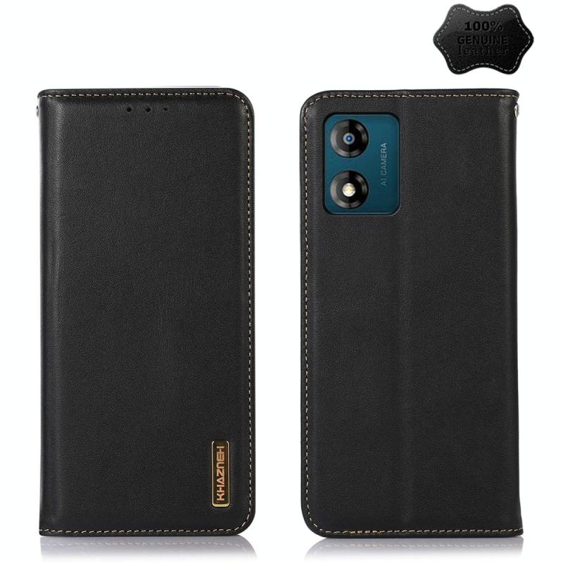 Θήκη τηλεφώνου από γνήσιο δέρμα Nappa αγελάδας, ανώτερης ποιότητας, για Motorola Moto E13 4G 2023 KHAZNEH (Μαύρο)