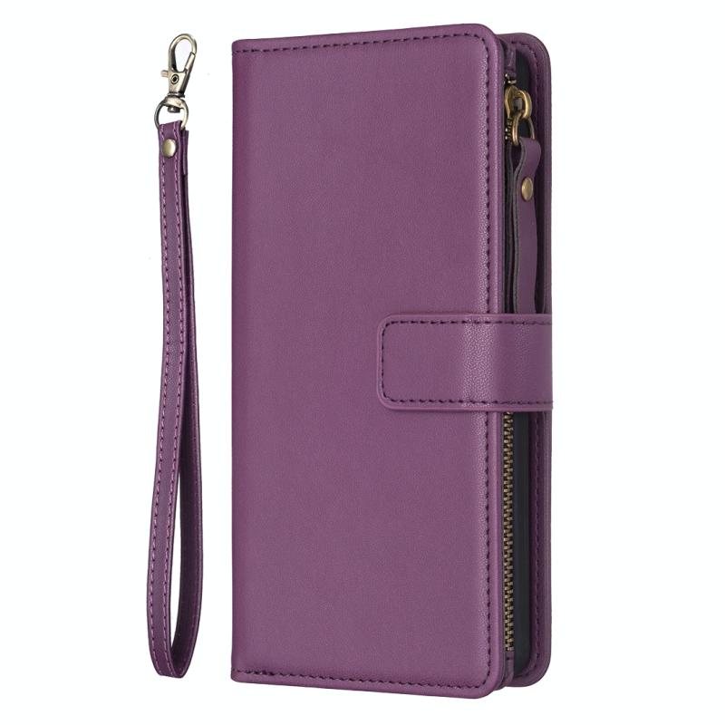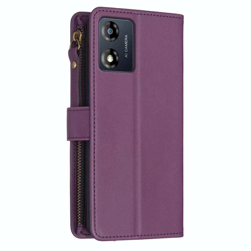 Για Motorola Moto E13 4G, Θήκη Τηλεφώνου από Δέρμα με Φερμουάρ και 9 Θήκες Καρτών (Σκούρο μωβ)