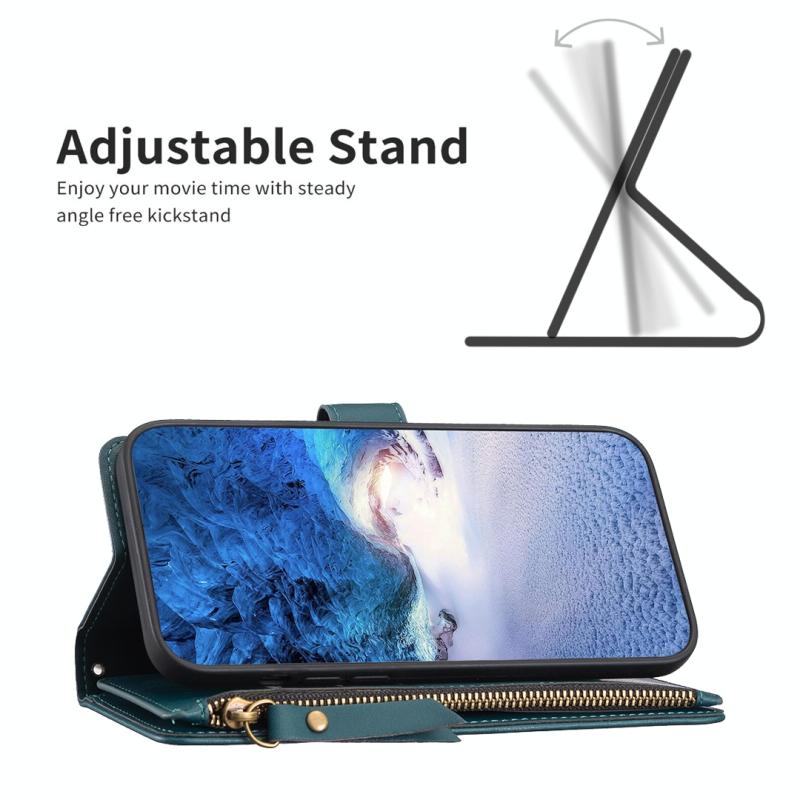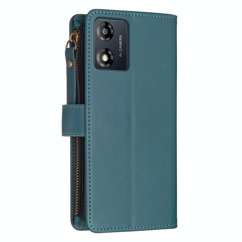 Για Motorola Moto E13 4G, Θήκη Τηλεφώνου από Δέρμα με Φερμουάρ και 9 Θήκες Καρτών (πράσινο)