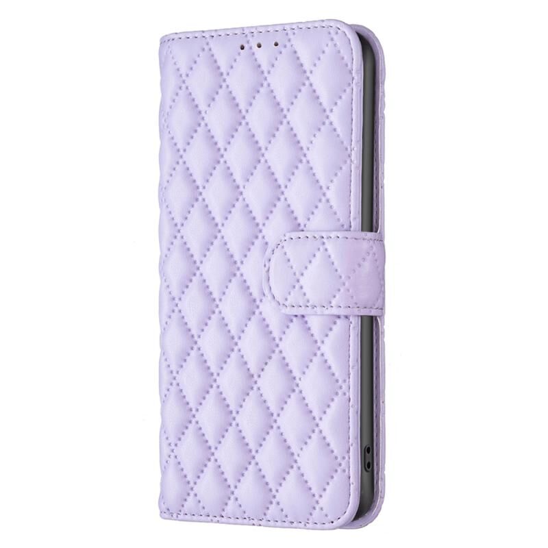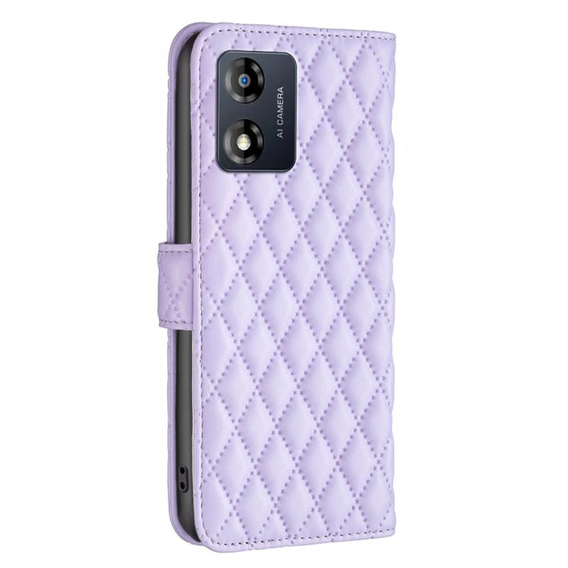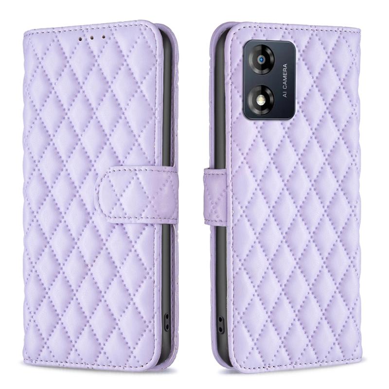 Θήκη κινητού τηλεφώνου τύπου πορτοφολιού με δερμάτινη αναδιπλούμενη επιφάνεια για Motorola Moto E13 4G, με σχέδιο διαμαντόσκονης (Μωβ)