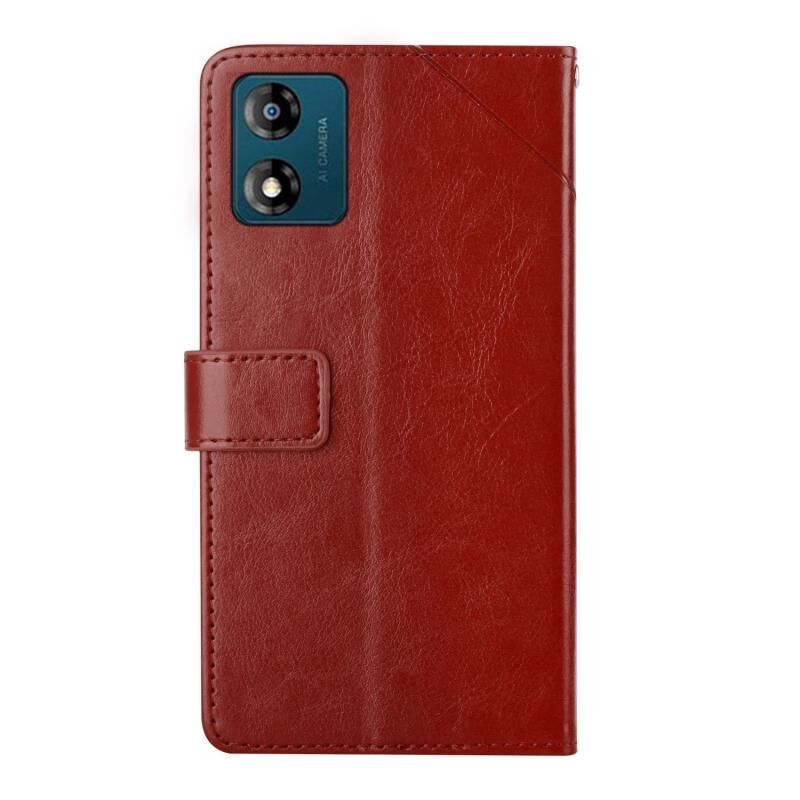 Θήκη τηλεφώνου από δέρμα με σχέδιο σε σχήμα Υ για Motorola Moto E13 4G HT01 (Καφέ)