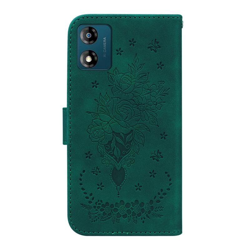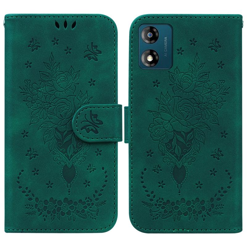 Θήκη κινητού τηλεφώνου από δέρμα με ανάγλυφο σχέδιο πεταλούδας για Motorola Moto E13 (Ροζ)