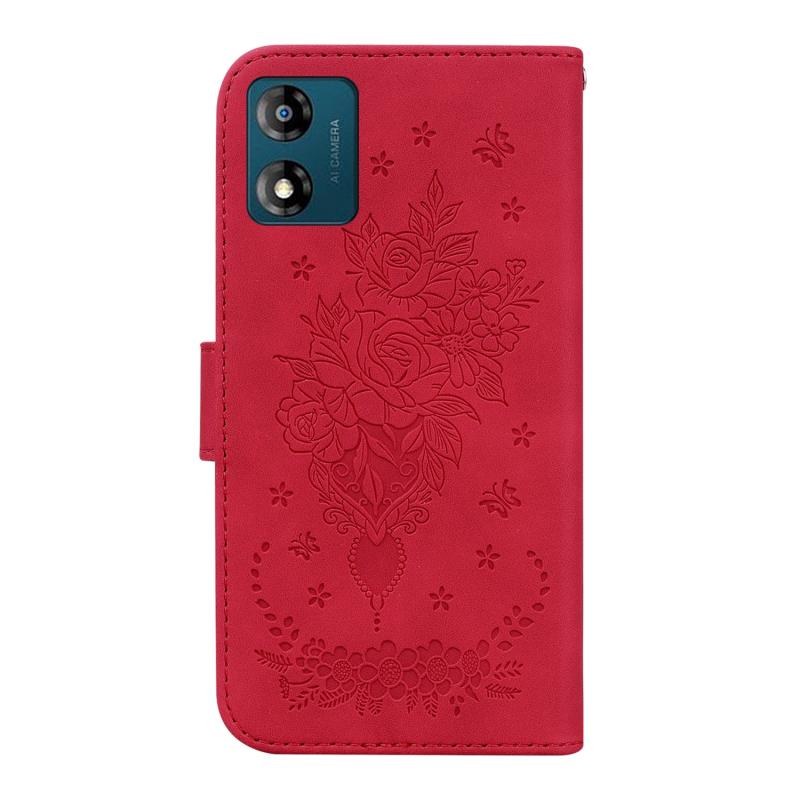 Θήκη κινητού τηλεφώνου από δέρμα με ανάγλυφο σχέδιο πεταλούδας για Motorola Moto E13 (Ροζ)