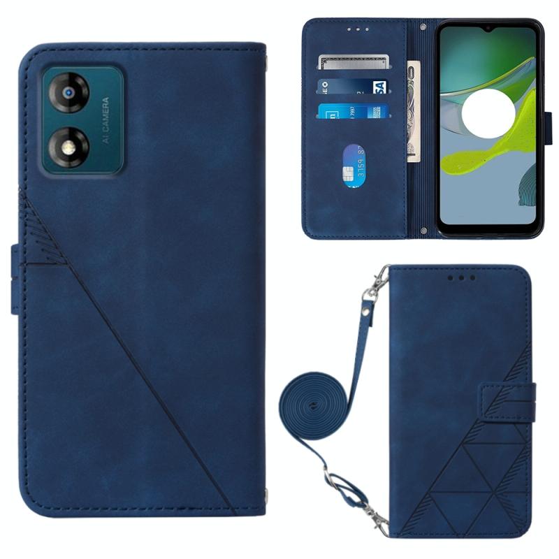 Θήκη κινητού τηλεφώνου Motorola Moto E13 Crossbody 3D ανάγλυφο δερμάτινο flip (Μπλε)