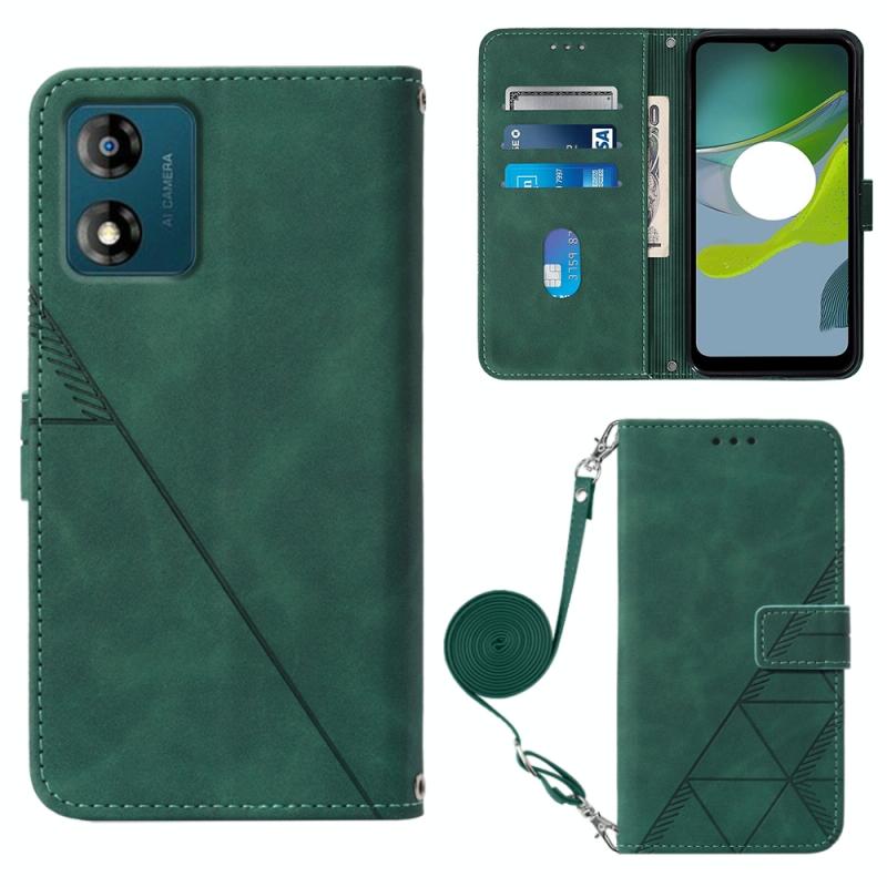 Θήκη κινητού τηλεφώνου Motorola Moto E13 Crossbody 3D ανάγλυφο δερμάτινο flip (Σκούρο πράσινο)