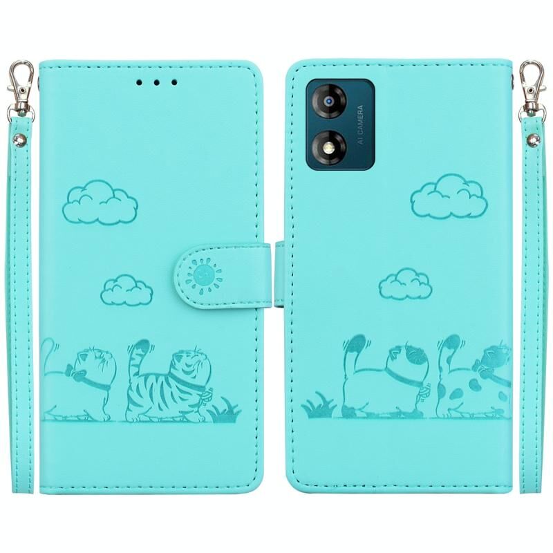 Θήκη τηλεφώνου από δέρμα RFID για Motorola Moto E13, με χαριτωμένες γάτες (Χρυσό ροζ)