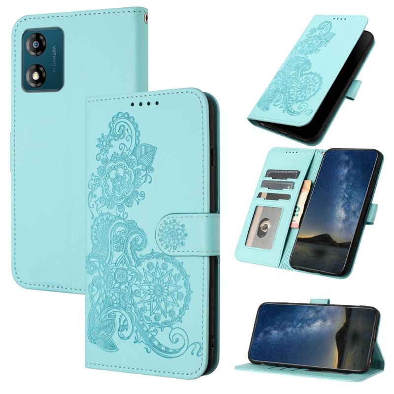 For Motorola Moto E13 Datura Flower Embossed Flip Leather Phone Case(Light Blue)