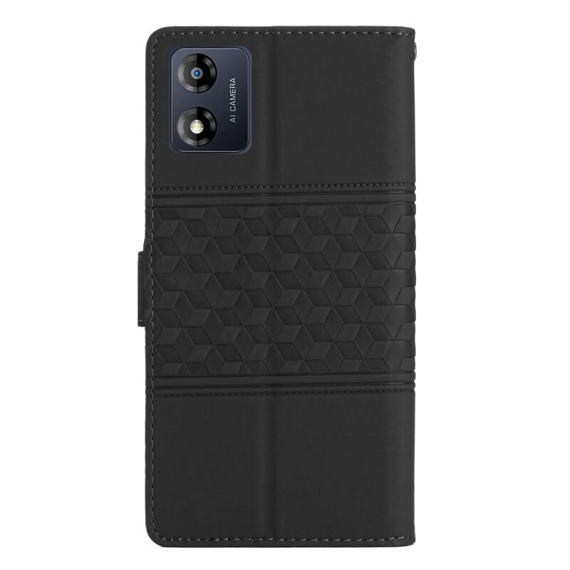 Για Motorola Moto E13 Diamond ανάγλυφο δέρμα αίσθηση δέρμα τηλέφωνο υπόθεση με κορδόνι (μαύρο)