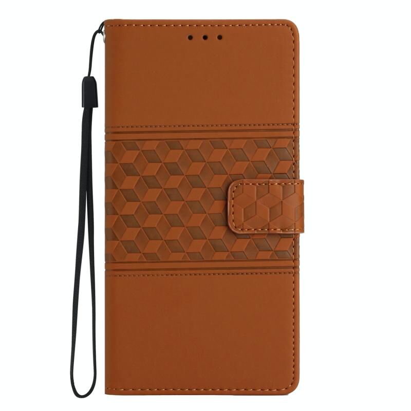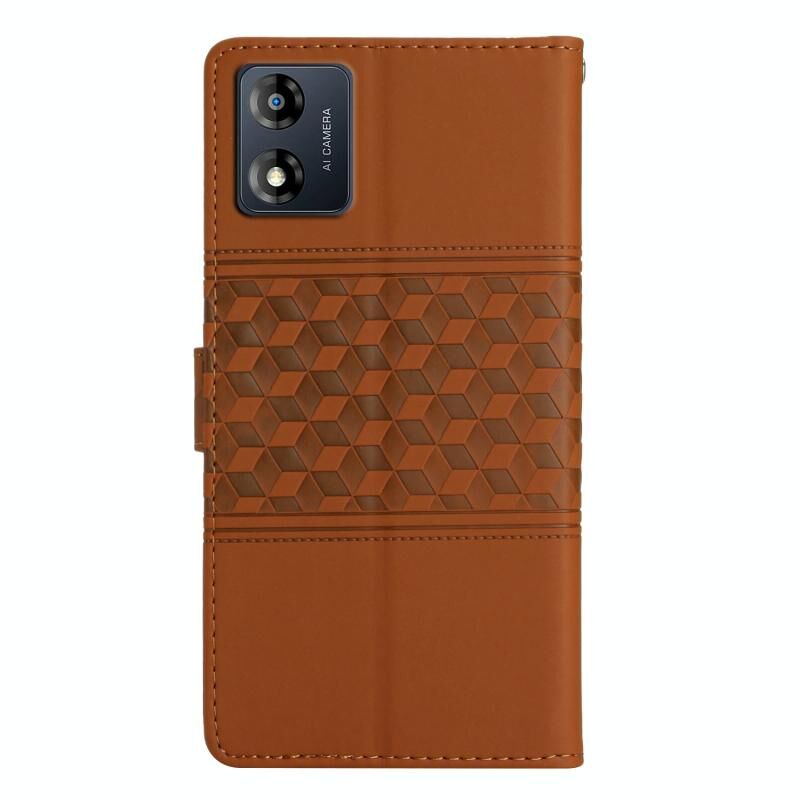 Για Motorola Moto E13 Diamond ανάγλυφο δέρμα αίσθηση δερμάτινη θήκη τηλεφώνου με κορδόνι (Καφέ)
