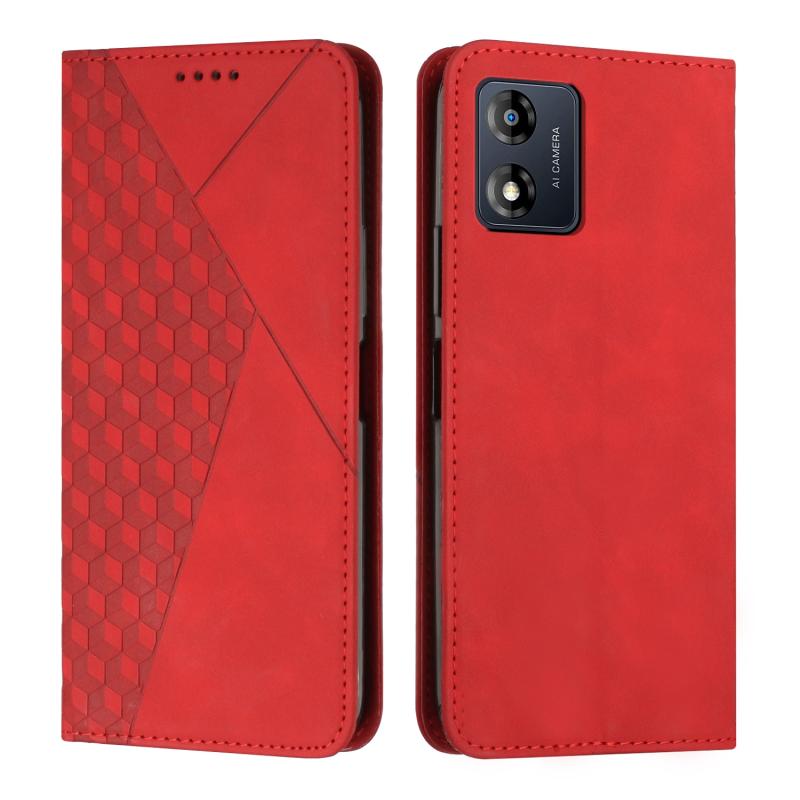 Θήκη κινητού τηλεφώνου με μαγνητικό κλείσιμο για Motorola Moto E13, με σχέδιο διαμαντιού και υφή δέρματος (Κόκκινο)