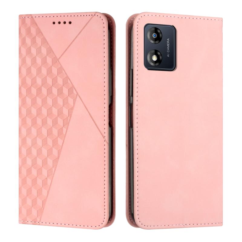 Θήκη κινητού τηλεφώνου με μαγνητικό κλείσιμο για Motorola Moto E13, με σχέδιο διαμαντιού και υφή δέρματος (Ροζ χρυσός)