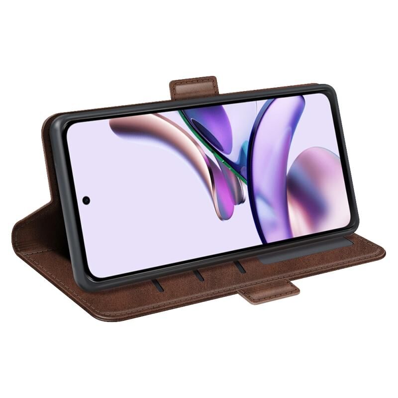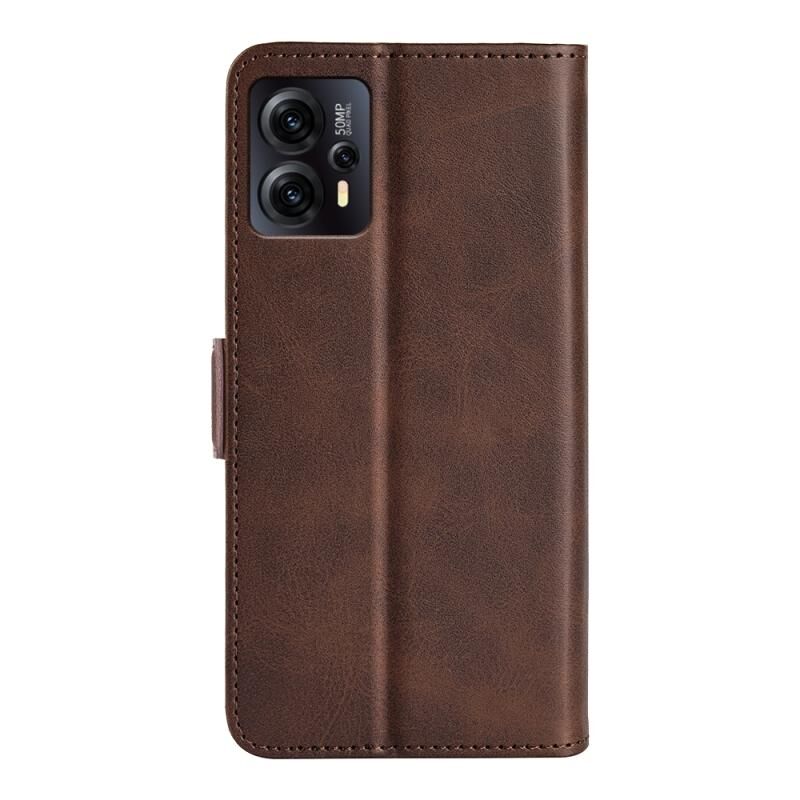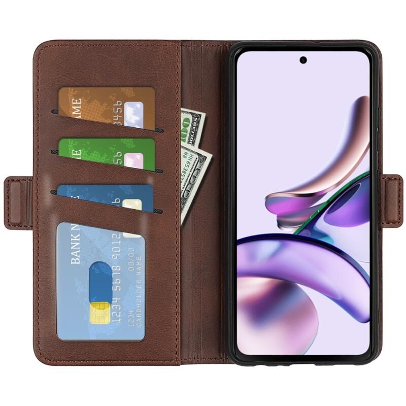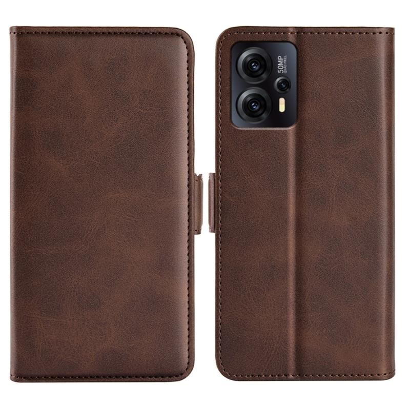 Για Motorola Moto E13 διπλής όψης μαγνητική πόρπη οριζόντια Flip δερμάτινη θήκη τηλεφώνου (καφέ)