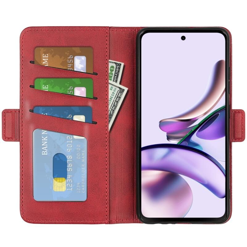 Για Motorola Moto E13 διπλής όψης μαγνητική πόρπη οριζόντια Flip δερμάτινη θήκη τηλεφώνου (κόκκινο)