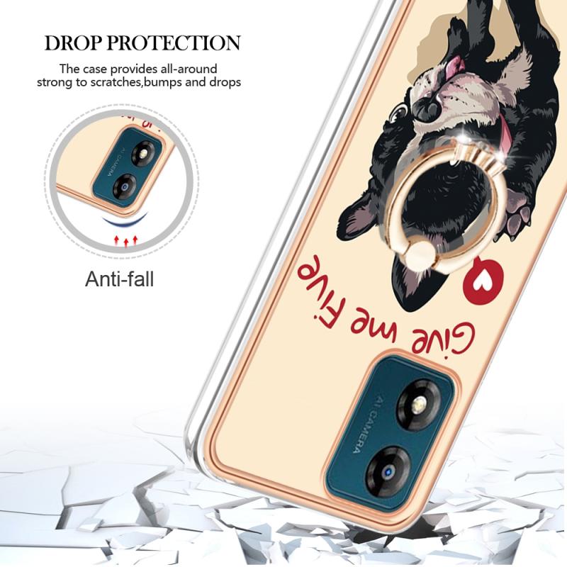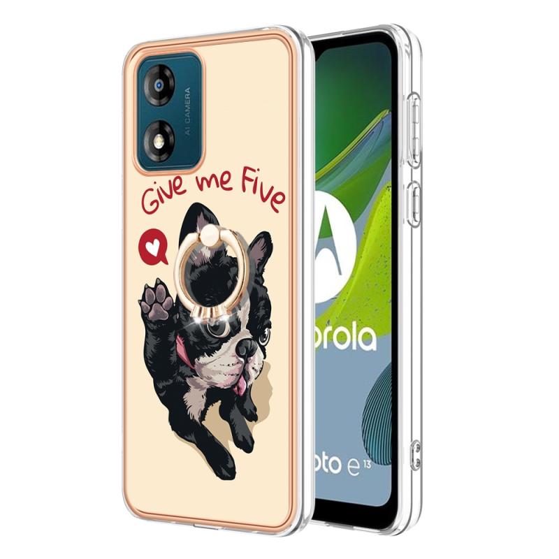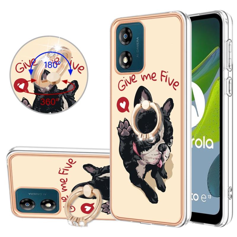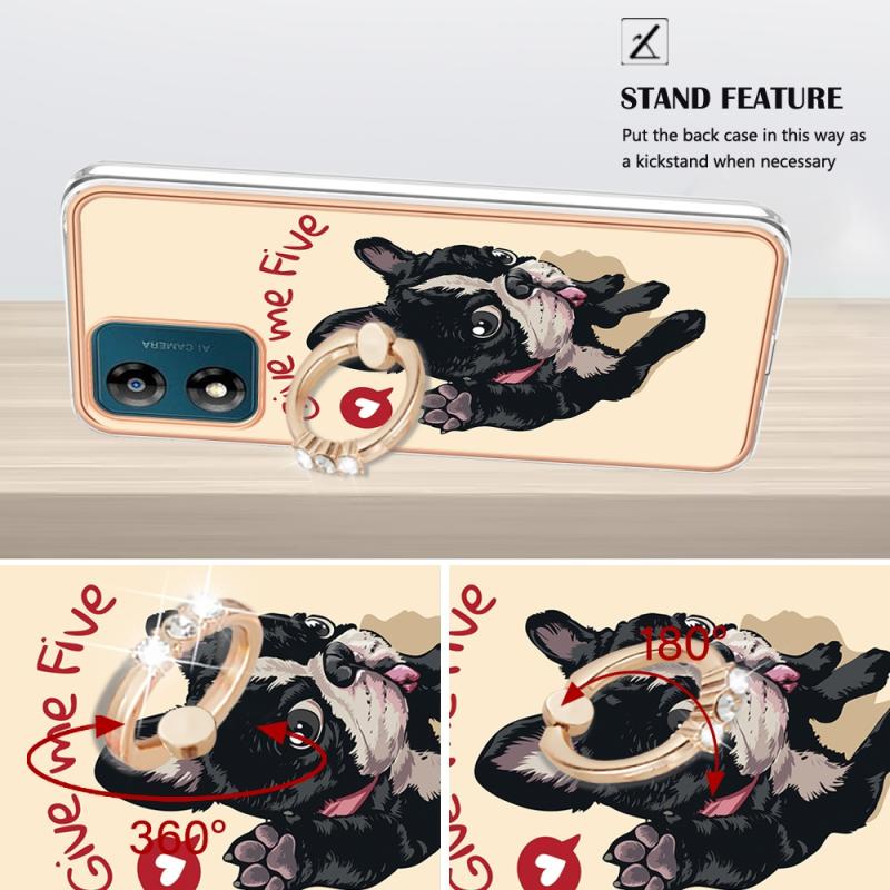 For Motorola Moto E13 Electroplating Dual-side IMD Phone Case with Ring Holder(Lucky Dog)