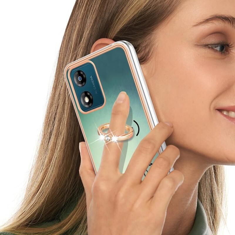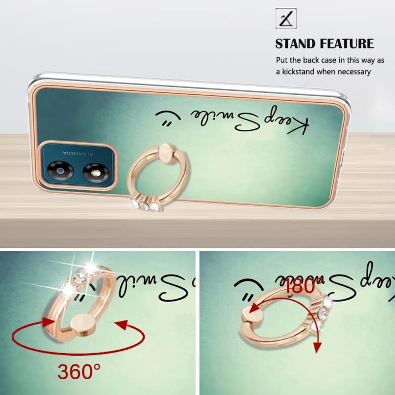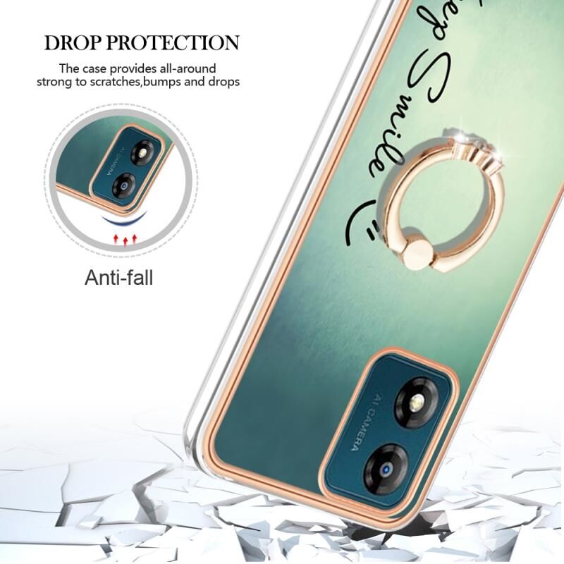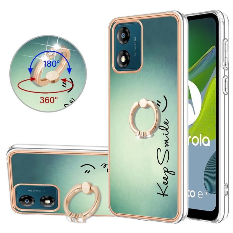 Θήκη τηλεφώνου με δακτύλιο στήριξης (Χαμόγελο) για Motorola Moto E13, επιμετάλλωση, διπλής όψης IMD.
