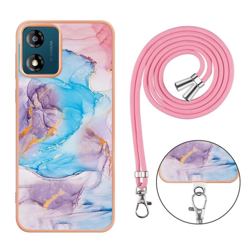 Θήκη κινητού τηλεφώνου Motorola Moto E13 με επιμετάλλωση IMD TPU με κορδόνι (Ροζ Λέπια)