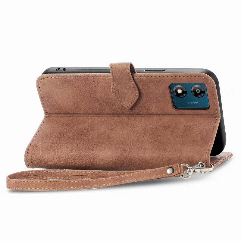 Για Motorola Moto E13 ανάγλυφο λουλούδι φερμουάρ δερμάτινη θήκη τηλεφώνου (Καφέ)