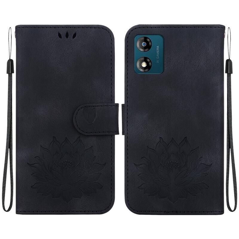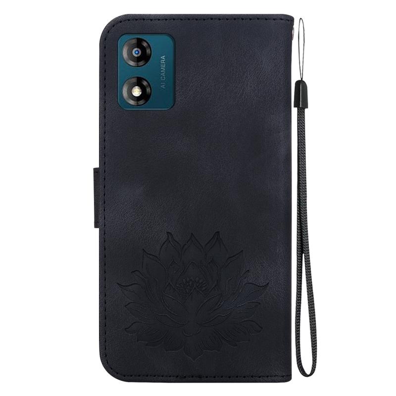 For Motorola Moto E13 Lotus Embossed Leather Phone Case(Black)