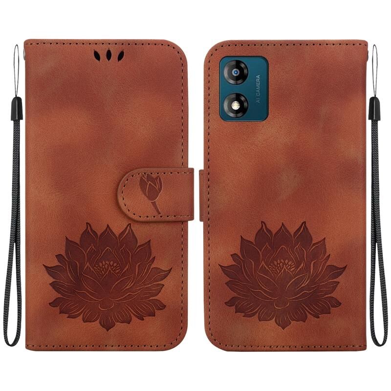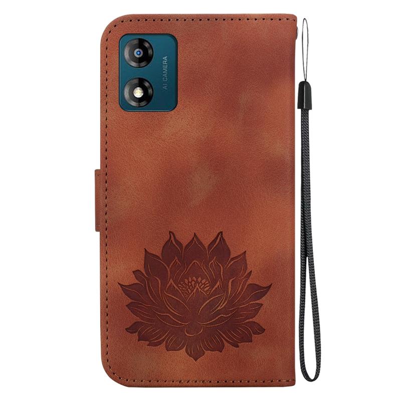 For Motorola Moto E13 Lotus Embossed Leather Phone Case(Brown)