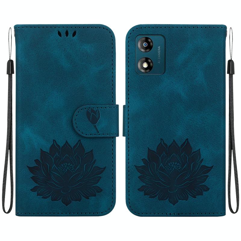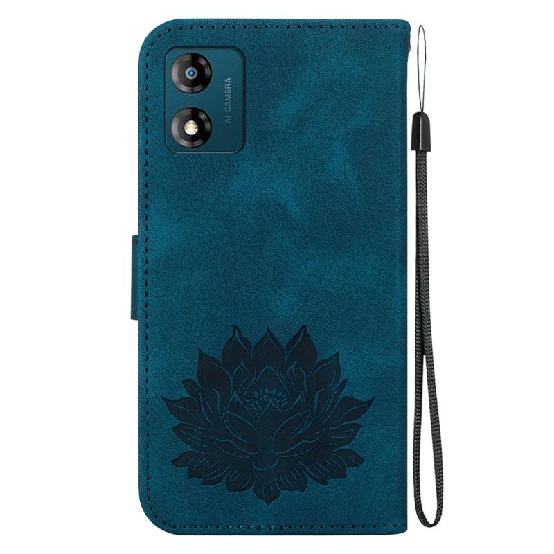 For Motorola Moto E13 Lotus Embossed Leather Phone Case(Dark Blue)