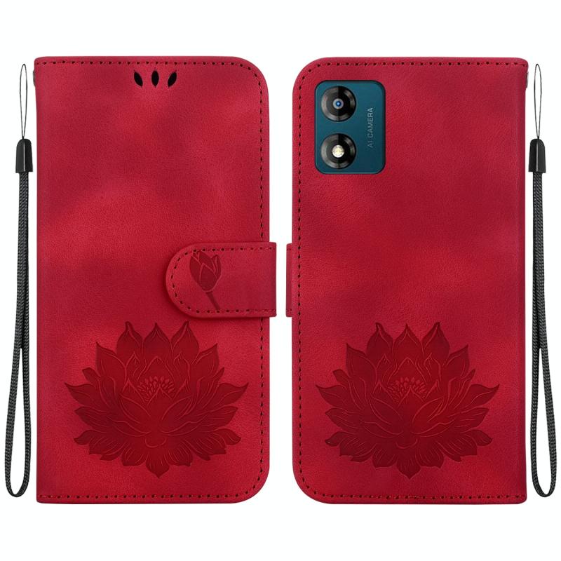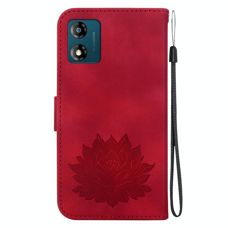 For Motorola Moto E13 Lotus Embossed Leather Phone Case(Red)