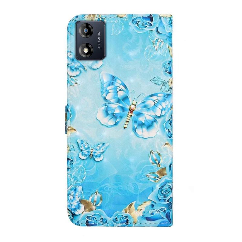 For Motorola Moto E13 Oil Embossed 3D Drawing Leather Phone Case(Blue Butterflies)